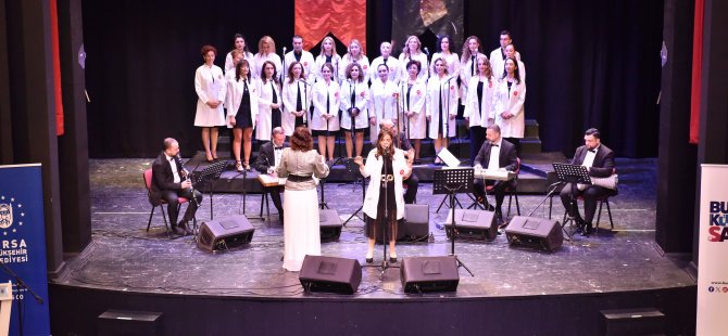 Bursa Büyükşehir Belediyesi tarafından 14 Mart Tıp Bayramı Haftası münasebetiyle düzenlenen konserde beyaz önlükleriyle sahne alan hekimler, sanat güneşi Zeki Müren’in eserlerini büyük bir başarıyla seslendirdi.