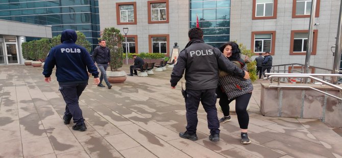 Sorgulaması tamamlanan kadın adliyeye sevk edildi. Kadın şüpheli, adliye girişinde kendisini görüntüleyen basın mensuplarına, "Hayırdır sen kimi çekiyorsun oğlum. Çekmesene" diyerek saldırmaya çalıştı.