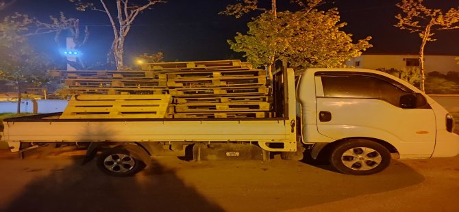 Edinilen bilgiye göre, bir plastik firmasına ait paletleri, plakaları sökülmüş kamyonete yüklerken, suçüstü devriye gezen gece kartallarına yakalandı.