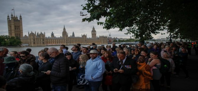 İngiltere’de geçtiğimiz hafta 96 yaşında hayatını kaybeden Kraliçe II. Elizabeth’in yası tutuluyor. Halk, başkent Londra'da Westminster Hall'e getirilerek katafalka konulan II. Elizabeth'in naaşını ziyaret etmeye devam ediyor. II. Elizabeth'in naaşını görmek isteyenler, Thames Nehri civarında 11 saatlik bekleme süresiyle kilometrelerce kuyruk oluşturdu.