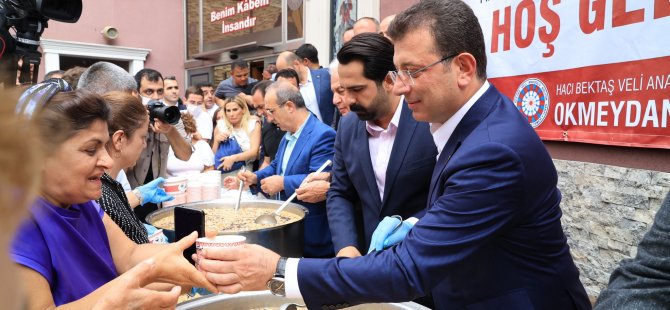 İstanbul Büyükşehir Belediye (İBB) Başkanı Ekrem İmamoğlu, Alevi vatandaşların tuttuğu 12 günlük Muharrem Matemi’nin ardından pişirilen aşure lokmasına ortak oldu. Hacı Bektaş Veli Anadolu Kültür Vakfı Okmeydanı Cemevi’nde gerçekleştirilen lokma paylaşımında İmamoğlu’na, Şişli Belediye Başkanı Muammer Keskin ve Beyoğlu Belediye Başkanı Haydar Ali Yıldız da eşlik etti. Lokma paylaşımı öncesinde sırasıyla; Okmeydanı Cemevi Başkanı Zeynel Şahin, Yıldız, Keskin, Hacı Bektaş Veli Anadolu Kültür Vakfı Genel Başkanı Ercan Göçmez ve İmamoğlu birer konuşma yaptı.