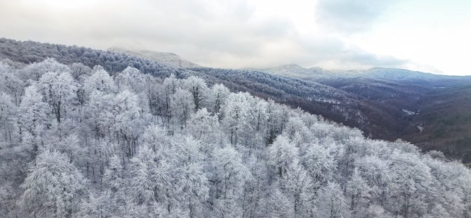 Çamla kaplı ormanların beyaz örtüye bürünmesi kartpostallık görüntüler ortaya çıkardı.
