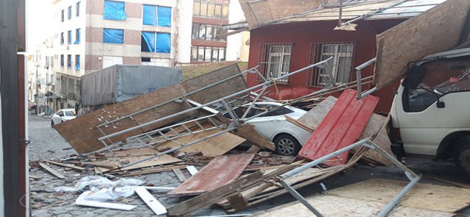 Fatih'te sabah saatlerinde 4 katlı yıkımı devam eden bir binadaki iskele henüz bilinmeyen bir nedenle çöktü.