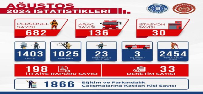 Yapılan açıklamada ayrıca bin 866 kişiye eğitim, olaylarla alakalı 198 itfaiye raporunun hazırlandığı ve 33 denetim gerçekleştirildiği ifade edildi.