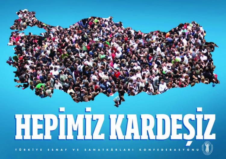 Türkiye’de son dönemde artan terör olaylarına ve yaşanan gerilimlere yönelik ‘Hepimiz Kardeşiz' sloganıyla afiş hazırlayan Türkiye Esnaf ve Sanatkarlar Konfederasyonu (TESK), kampanyanın daha etkili ve verimli hale gelmesi için 2015-2016 eğitim ve öğretim