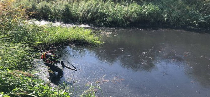 Aramalar derenin suyu başka yere çevrilerek 3 metrelik balçıkta kontrollü bir şekilde sürdürülüyor.