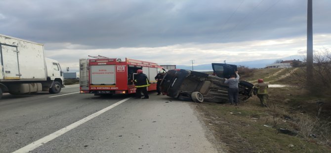 Orhangazi ilçesinde yoldan çıkan araç, gider çukuruna düştükten sonra takla atarak yol kenarına yan yattı. Araçta sıkışan sürücü itfaiye tarafından kurtarıldı.
