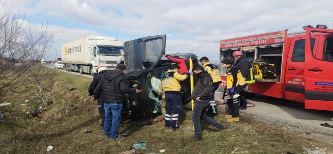 Ana yolun yanındaki gider hattına uçan araç, ardından da takla atarak yol kenarına yan yattı. Orhangazi’de çiçekçilik yapan Meryem Avcı, hurdaya dönen araçta sıkıştı.