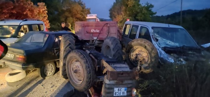 Bursa'nın Kestel ilçesinde önce traktörle otomobil çarpıştı, onları fark edemeyen bir sürücü daha kazaya karıştı. Zincirleme kazada 3 kişi yaralandı