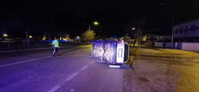 Çarpmanın etkisiyle 50 metre sürüklenen otomobil yan durdu. Kaza sonucu sürücü yaralandı.