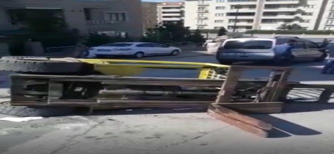 Bursa’da kullandığı forkliftin altında kalan operatörün ayak parmakları koptu. Yaralı şahısla birlikte 4 kopan parmak hastaneye kaldırılırken, olay yerini inceleyen polis ekipleri ise beşinci parmağı bularak hastaneye götürdü.