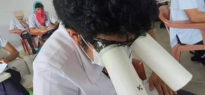 Filipinler’de Bicol Üniversitesi Mühendislik Fakültesi öğrencilerinden başkalarının kağıtlarına bakmalarını engelleyecek bir şapka takmaları istendi.