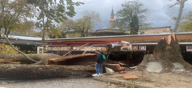 Bursa'da 2.Beyazıd tarafından İstanbul'daki tarihi cami ve medreselere gelir elde edilmesi amacıyla 1492 yılında inşa edilen İç Kozahan'daki 250 yaşındaki tarihi çınar fırtınaya dayanamadı.