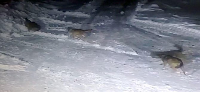 Ardahan'da kar ve soğuk hava nedeniyle yiyecek bulamayınca köye inen sürücü halindeki kurtlar 2 köpeği telef etti.