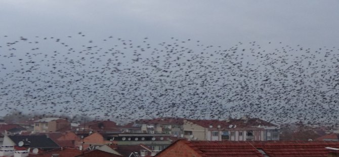 İnegöl semalarında o anlar saniye saniye kameraya yansıdı. Sürü halinde hareket eden kuşlar bir süre havada uçtuktan sonra ağaçlara konarak bir müddet bekleyip tekrar uçtu.