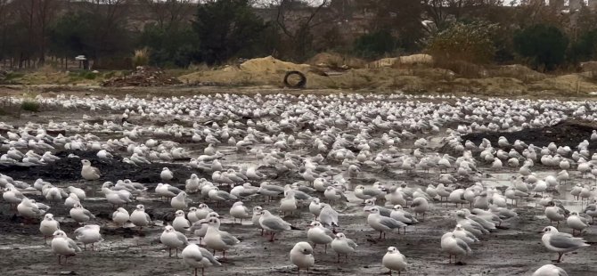 Fırtına nedeniyle uçamayan yüzlerce martı Kazlıçeşme’de boş bir araziye kondu. Martıların konduğu arazi beyaza bürünürken, uçmakta zorlanan binlerce martı, lodosun geçmesini beklediği görüldü.