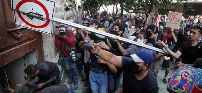 ABD’de siyahi George Floyd’un polis tarafından nefessiz bırakılarak öldürülmesinin ardından dünya genelinde polis şiddetine karşı protestolar düzenleniyor. Meksika’nın Jalisco eyaletinin başkenti Guadalajara’da yüzlerce kişi, maske takmadığı gerekçesiyle gözaltına alınırken dövülen ve daha sonra hayatını kaybeden 30 yaşındaki Giovanni Lopez için sokağa indi. Kentteki Eyalet Meclisinin önünde toplanan yüzlerce protestocu, Lopez için adalet talebiyle yürüyüş düzenledi. Barışçıl başlayan protestolar sırasında bir grup, Eyalet Meclisi binasına girmeye çalışırken polis müdahalede bulundu.