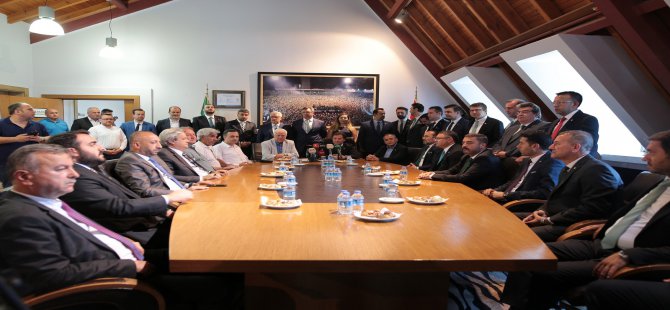 Bursaspor Başkanı Mesut Mestan ve yönetim kurulu üyeleri, daha sonrasında basın mensuplarına poz verdi.