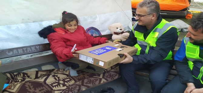 Asrın felaketine tanık olan minik yürekleri de unutmayarak oyuncak dağıtımı yapan Büyükşehir Belediyesi ekipleri, evlerinin yıkılması sonucu halası ve eniştesiyle birlikte çadırda kalan 7 yaşındaki Melek’in istediğine duyarsız kalmadı. Bilgisayarının enkaz altında kalmasına çok üzüldüğünü dile getirmesi üzerine ekipler, hemen harekete geçerek kısa sürede yeni bir bilgisayar temin etti.