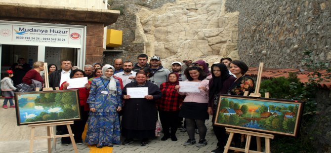 Daha sonra Osmangazi Halk Eğitim Merkezi görevlilerinden resim öğretmeni Pınar Kaya ile el sanatları öğretmeni Derya Çınar Uludağ'ın, yaklaşık 1,5 yıldır sürdürdüğü kurslarda öğrenim gören 18 kişiye sertifikaları takdim edildi. Temsili kurdele kesilerek açılışı gerçekleştirilen sergide, davetliler, el emekleri ve resimleri ilgiyle inceledi.