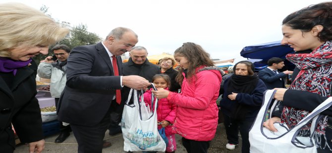 Mudanya Belediye Başkanı Hayri Türkyılmaz, Halitpaşa Mahallesi’nde kurulan Pazartesi Pazarı’nda esnaf ve vatandaşla bir araya geldi. Başkan Türkyılmaz, “5 pet şişe getir, bez çantanı al” projesi kapsamında bez çanta dağıtırken, toplanan pet şişelerle de engellilere akülü sandalye alınacağını hatırlattı.