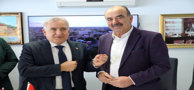 Ankara Büyükelçisi Elvis Antonio Alam ön protokolün ardından günün anısını Başkan Hayri Türkyılmaz’a iki ülke bayrağının bulunduğu rozet hediye etti.