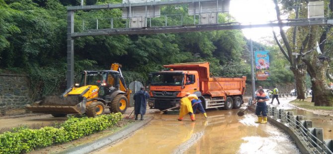 Sarıyer'de etkili olan yağış nedeniyle Çayırbaşı Tüneli kapandı. Araçlar tünel girişinde beklerken iş makinlerinin tezimleme çalışmaları devam ediyor.