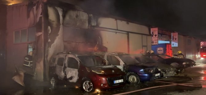 Bursa’da oto tamirhanesinde bulunan iş yerinde yangın çıktı. Kısa sürede büyüyen alevler iş yeri önündeki 4 aracı küle çevirdi.