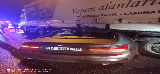 Edinilen bilgiye göre, Mahmut D. (22) idaresindeki 34 SRH 30 plakalı otomobil yağış nedeniyle kayganlaşan yolda sürücüsünün idaresinden çıkarak yine aynı istikamette seyir halindeki 10 ED 164 plakalı tırın dorsesine çarptı.