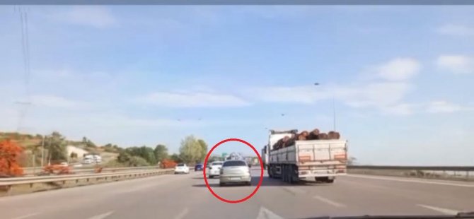 Hızla ilerleyen araç sürücüsü, şerit değiştirmek istedi.