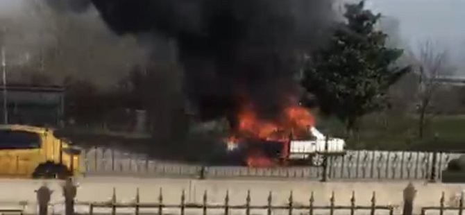 Sürücü, otomobilini emniyet şeridine çekti. Dumanların yükseldiği otomobil bir anda alev aldı.