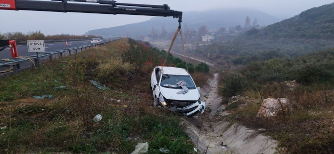 Bursa'nın Orhangazi ilçesi yakınları İstanbul İzmir otobanı üzerinde bir otomobil kontrolden çıkıp bariyerleri aşarak şarampole uçtu. Takla atan otomobilde bulunan 4 kişi şans eseri kazayı hafif yaralı olarak atlattı.