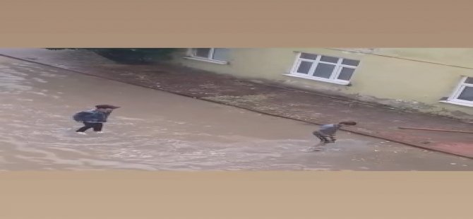 Sağanak yağışın tadını ise çocuklar çıkardı. Suyla kaplanan yolda oynayan çocukların eğlence dolu anları cep telefonuyla kaydedildi.
