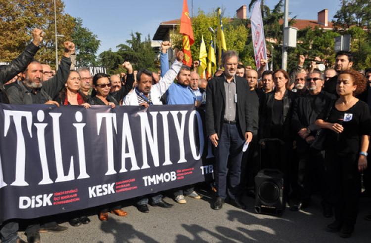 Patlamada hayatını kaybeden insanların Ankara’ya, Türkiye’nin dört bir yanından barış, emek ve demokrasi diye haykırmak için geldiğini belirten TTB yöneticisi Raşit Tükel, “Yolsuzluğa, hırsızlığa, emek sömürüsüne karşı çıkmak için gelmişlerdi. Bir saniye içinde Sıhhiye Meydanı’nı kana buladılar. Yüzü aşkın canımız gitti. Üzgünüz. Öfkeliyiz, yastayız.” dedi.