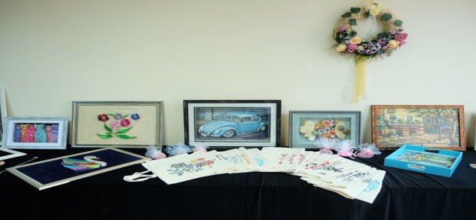 Ekim ayında eğitime başlayan yaklaşık 35 kursiyerin ürünlerinin yer aldığı sergide ahşap boyamadan kâğıt rölyefe, çorap kediden kanaviçe kolyeye, dikişsiz kırkyamadan kapı süsüne yaklaşık 160 eser ziyaretçilerin beğenisine sunuldu.