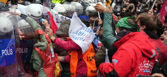 Saraçhane'de 1 Mayıs Emek ve Dayanışma Günü nedeniyle toplanarak yasağa uymayan çeşitli sendika üyelerine polis ekipleri müdahale ederken o anlar fotoğraf karelerine yansıdı.