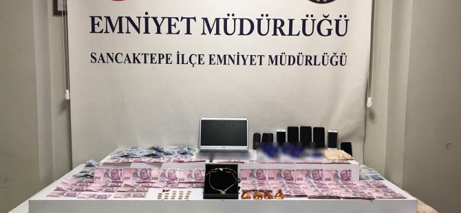 Şüphelilerin evlerinde yapılan aramalar neticesinde 9 adet farklı numaralara ait sim kart, 8 adet cep telefonu, 18 adet Cumhuriyet altını, 5 adet çeyrek altın, 69 bin 150 lira ve 13 bin 606 dolar ele geçirildi.