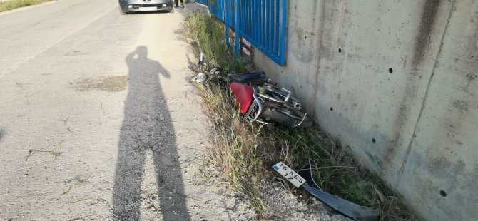Bursa'nın İnegöl ilçesinde bir motosikletin istinat duvarına çarpıp, kanala düştüğü kazada 2 kişi yaralandı.