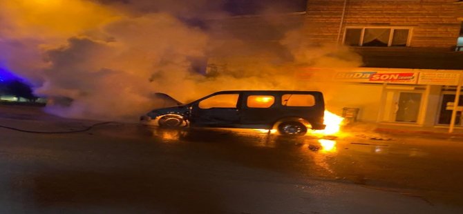 Aracın yandığını gören çevredekiler durumu itfaiye, polis ekiplerine bildirdi.