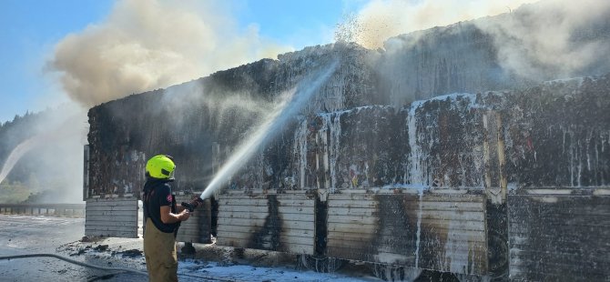Kısa süre içerisinde büyüyen yangın, tırın römork kısmında bulunan kağıt balyalara sıçradı.