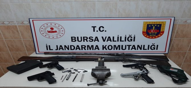 Kaçakçılık ve Organize Suçlarla Mücadele Şube Müdürlüğü, İnegöl JASAT ve Yenice Jandarma Karakol Komutanlığı ekiplerince gerçekleştirilen operasyonda 4 adet tabanca, 3 adet ruhsatsız av tüfeği, 4 adet şarjör, 1 çanta içerisinde muhtelif tabanca parçaları, 1 adet matkap, 1 adet mengene, 1 adet kesme malzemesi ile çok sayıda küçük el aletleri ele geçirildi.