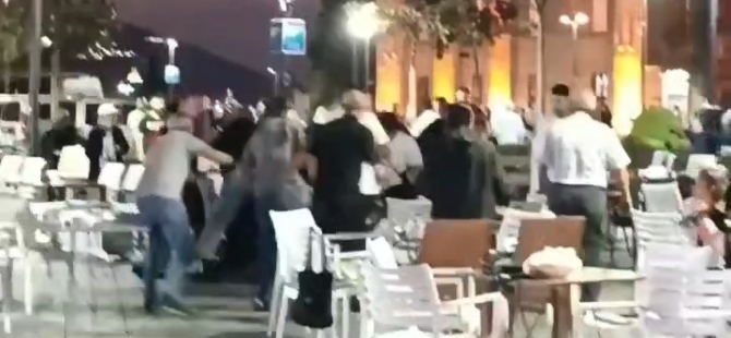 Taraflar kısa sürede kavgaya tutuşurken saldırganlardan biri kavga ettiği kişilere sandalye fırlattı.