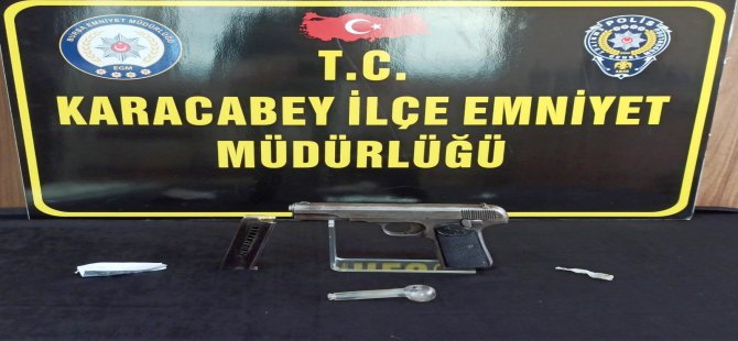 Araçta bulunan S.G.'nin (23) üzerinden tabanca ve şarjöre basılı 1 adet fişek ele geçirildi. Yine araçta bulunan M. K.'nın (29) üzerinden ağırlığı 0.90 gram olan metamfetamin maddesi, araç sürücüsü olan K.D.'nin (35) üzerinden ise ağırlığı 0.50 gram olan kenevir tohumu ele geçirildi.