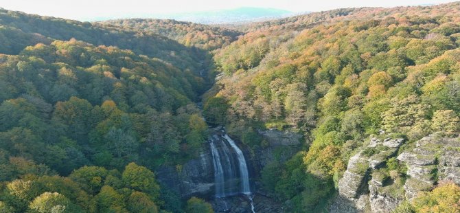Bursa'nın Mustafakemalpaşa ilçesinde fay hattının kırılmasıyla oluşan Suuçtu Şelalesi, sonbaharda yeşil ve sarının tüm tonlarına bürünüp binlerce ziyaretçiyi ağırlıyor.