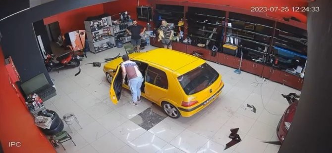 Bursa’da otomobilini bakım için tamirci dükkanına getiren sürücü gaza basınca önce işyeri sahibine, ardından dükkanda bulunan malzemelere çarptı.