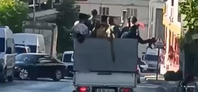 Kamyonet arkasında tehlikeli yolculuk yapan 8 şahıs mutlu günlerinde ne kendilerini, ne de başkalarını düşünürken, tehlikeli yolculuk amatör kameralara anbean yansıdı.