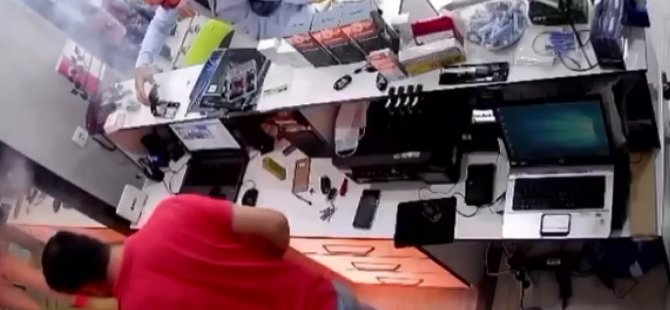 Olay, geçtiğimiz gün merkez Osmangazi ilçesindeki bir telefoncu dükkanında meydana geldi. Güvenlik kameralarına yansıyan görüntülerde, telefonun şişen bataryasını çıkaracağı sırada bataryadan dumanlar yükselmeye başladı. Sonrasında alev alan bataryayı elleriyle telefondan çıkaran adam, telefonu yanmaktan son anda kurtardı. Yanan bataryayı yere atan adam paspasla bataryayı söndürmeyi başardı.