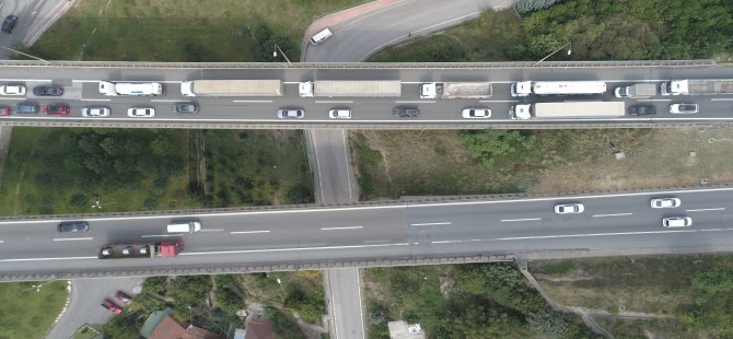 Kilometrelerce uzunluktaki araç kuyruğu havadan görüntülendi