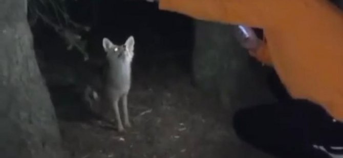 Tilkinin ürkerek köfte yemesi dikkat çekerken, hayvansever vatandaşın ise rahat tavırları kameraya yansıdı.