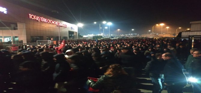Bursalı otomotiv devi TOFAŞ'ta 4 aydır devam eden toplu iş sözleşmesi görüşmelerinden bir sonuç çıkmayınca, işçiler sabah 06:45 vardiyasında meşale ve sloganlarla yürüyüş düzenledi.